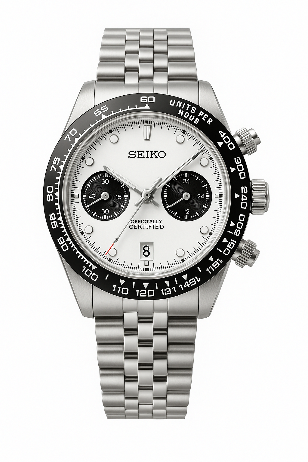 En su interior alberga el movimiento meca-cuarzo Seiko VK64, un calibre híbrido que une la precisión del cuarzo con la respuesta mecánica de un cronógrafo tradicional. Su accionamiento firme y su retorno instantáneo de las agujas transmiten una sensación auténtica de precisión y control.