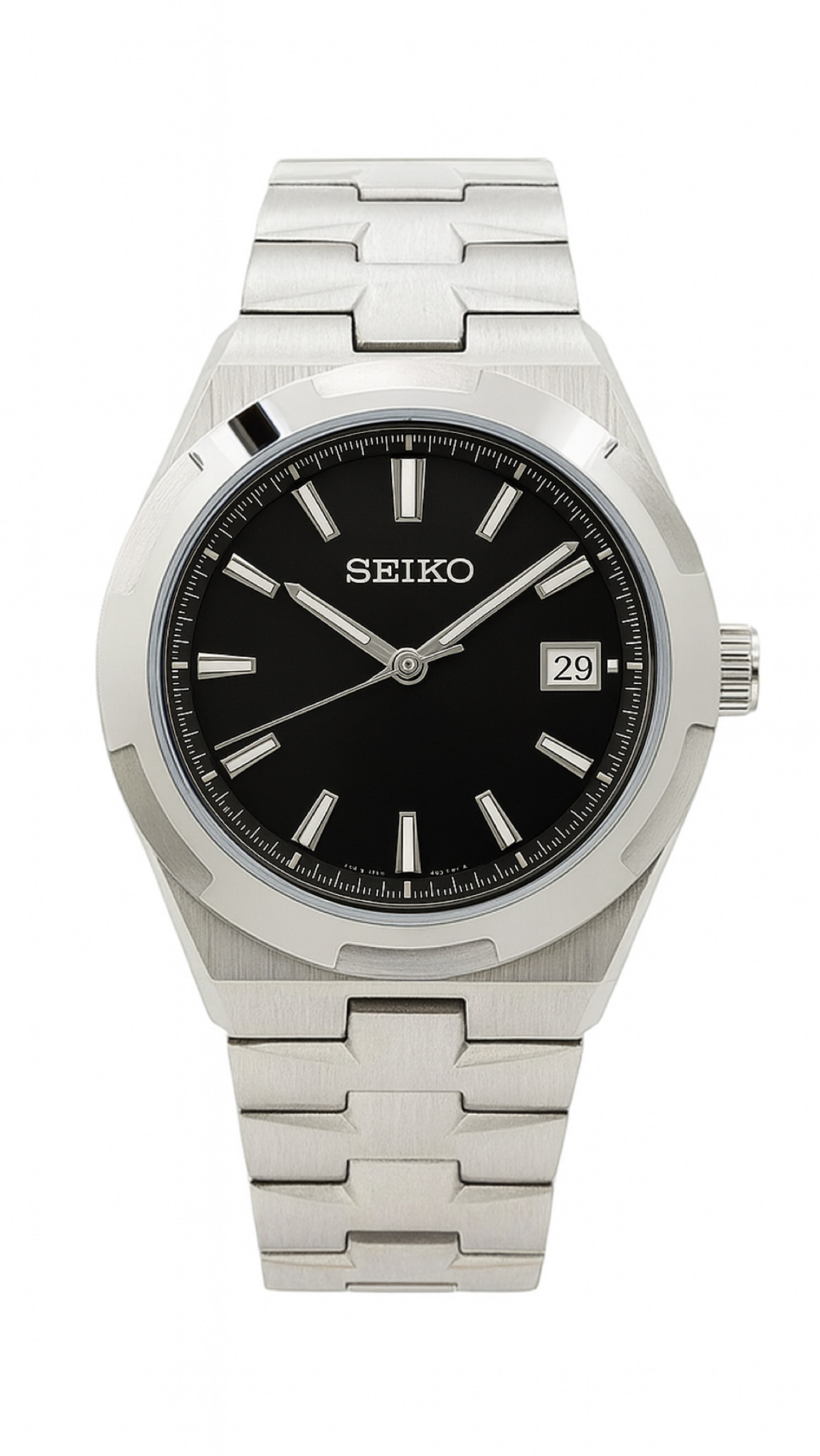 La esfera, disponible en tonos profundos con acabado cepillado, refleja la precisión y equilibrio característicos de Seiko. En su interior, el confiable movimiento automático